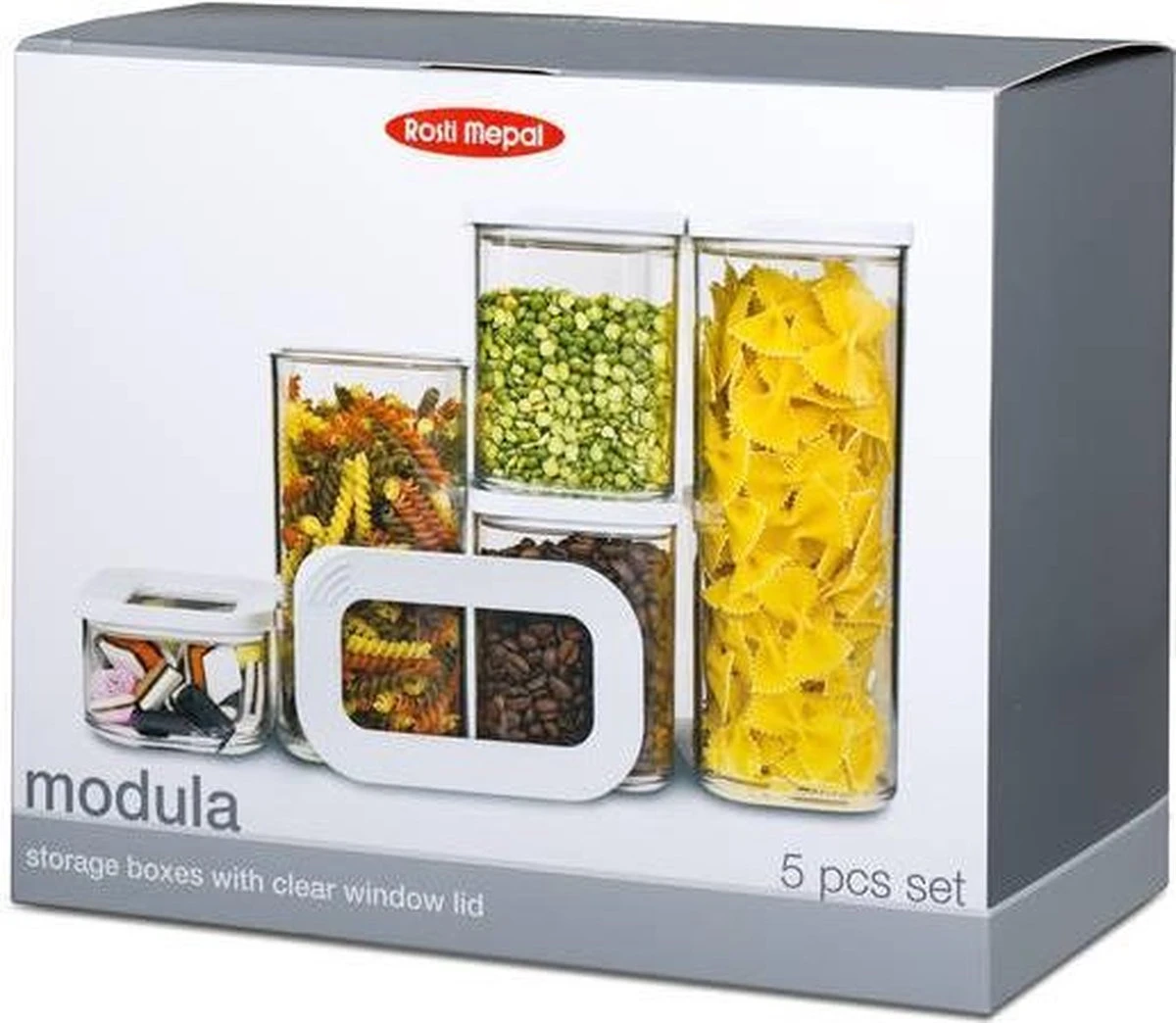 7-delige starterset met Modula bewaardozen. Deze handige Modula set bestaat uit 7 bewaardozen met deksel: 1 x 2000 ml, 2 x 1500 ml, 2 x 1000 ml en 2 x 425 ml. De witte afdichtring zorgt voor een perfecte afsluiting, waardoor de voorraaddozen geschikt zijn voor het bewaren van droge etenswaren zoals koffie, meel, chips, kruiden en pasta. De Modula bewaar- en opbergdozen van Mepal liggen goed in de hand en zijn makkelijk te openen. Bovendien zijn de voorraadpotten stapelbaar en vaatwasmachinebestendig. Hoe veeleisend u ook bent: Modula bewaardozen zijn erop berekend!
