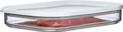 Vleeswarendoos Modula, voorzien van een doorzichtige deksel met witte ring. De rechthoekige Modula vleeswarendoos met afgeronde hoeken heeft een inhoud van 550 ml en geeft direct zicht op inhoud, ook in de koelkast! De witte afdichtring van de bewaardoos zorgt voor een perfecte afsluiting, waardoor deze koelkastdoos geschikt is voor het bewaren van diverse vleeswaren. De Modula bewaar- en opbergdozen van Mepal zijn verkrijgbaar in verschillende maten en uitvoeringen, liggen goed in de hand en zijn makkelijk te openen. Bovendien zijn ze stapelbaar en vaatwasmachinebestendig. Hoe veeleisend u ook bent: Modula bewaardozen zijn erop berekend!