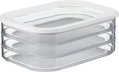 Vleeswarendoos Modula 3-delig, voorzien van een doorzichtige deksel met witte ring. De rechthoekige Modula vleeswarendoos met afgeronde hoeken heeft een inhoud van 1650 ml en geeft direct zicht op inhoud, ook in de koelkast! De witte afdichtring van de bewaardoos zorgt voor een perfecte afsluiting, waardoor deze koelkastdoos geschikt is voor het bewaren van diverse vleeswaren in 3 lagen. De Modula bewaar- en opbergdozen van Mepal zijn verkrijgbaar in verschillende maten en uitvoeringen, liggen goed in de hand en zijn makkelijk te openen. Bovendien zijn ze stapelbaar en vaatwasmachinebestendig. Hoe veeleisend u ook bent: Modula bewaardozen zijn erop berekend!