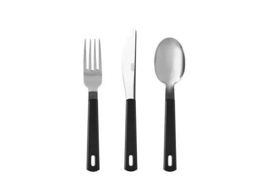 Mes, vork en een lepel. Een eenvoudige set die onmisbaar wordt.