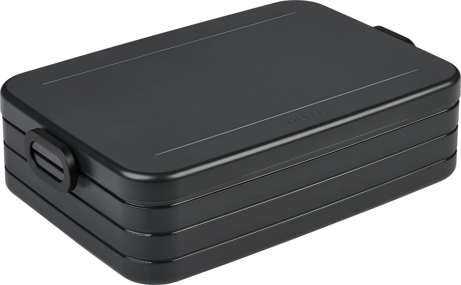 Lunchbox Take a Break large in de kleur Nordic black. Deze grote zwarte broodtrommel van Mepal is geschikt voor maximaal 8 boterhammen.