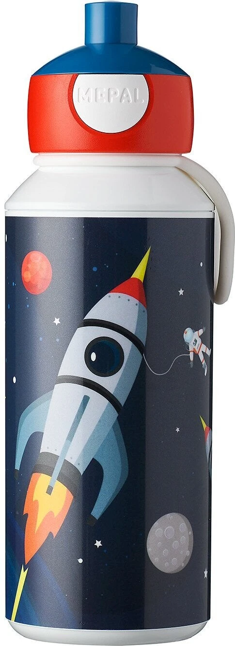 De Campus pop-up drinkfles met space print uit het assortiment van Mepal is echt ideaal. Druk en drink, dat is het principe. Druk op de drinktuit en de fles is open, druk nog een keer en hij is dicht. Reuze handig tijdens actieve momenten en voor een snelle slok tussendoor. Of om gewoon mee naar school te nemen natuurlijk! De Campus pop-up drinkfles space is lekvrij en ook makkelijk door kleine kinderhandjes te gebruiken. De fles is voorzien van een handig lusje, waarmee je hem zonder moeite meeneemt. Fijn voor papa en mama: de fles mag in zijn geheel in de vaatwasser en de dop is eenvoudig uit elkaar te halen.
