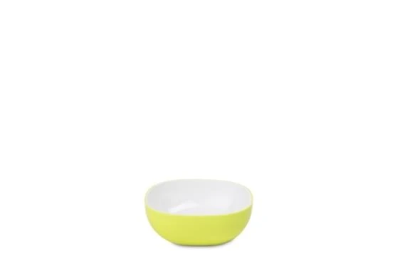 De Synthesis 250 ml van Mepal is een kleine vierkante serveerschaal in duotone kleuren waar je bijvoorbeeld lekkere nootjes, chips of vers fruit in kan doen. Omdat de bakjes makkelijk in elkaar passen nemen ze ook weinig ruimte in je keukenkastjes in.
